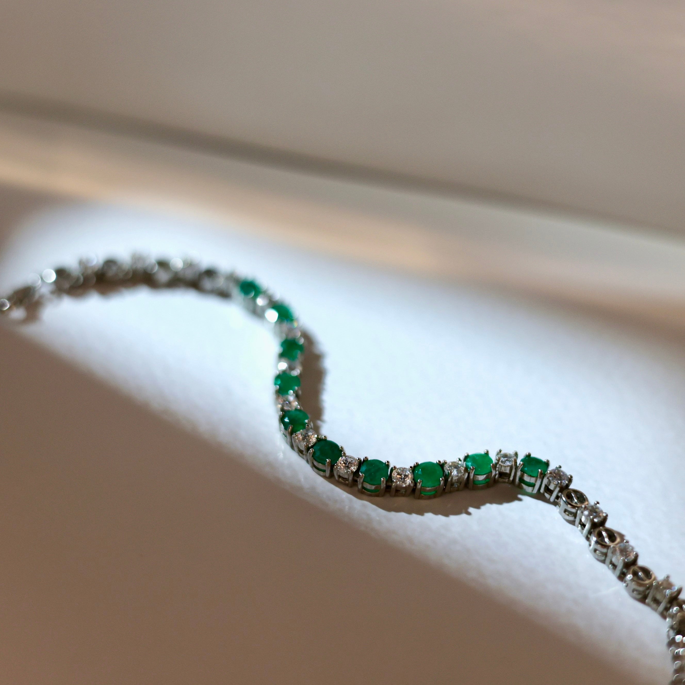 Tennis Bracelet in 18K White Gold with Bezel-Set Round Colombian Emeralds