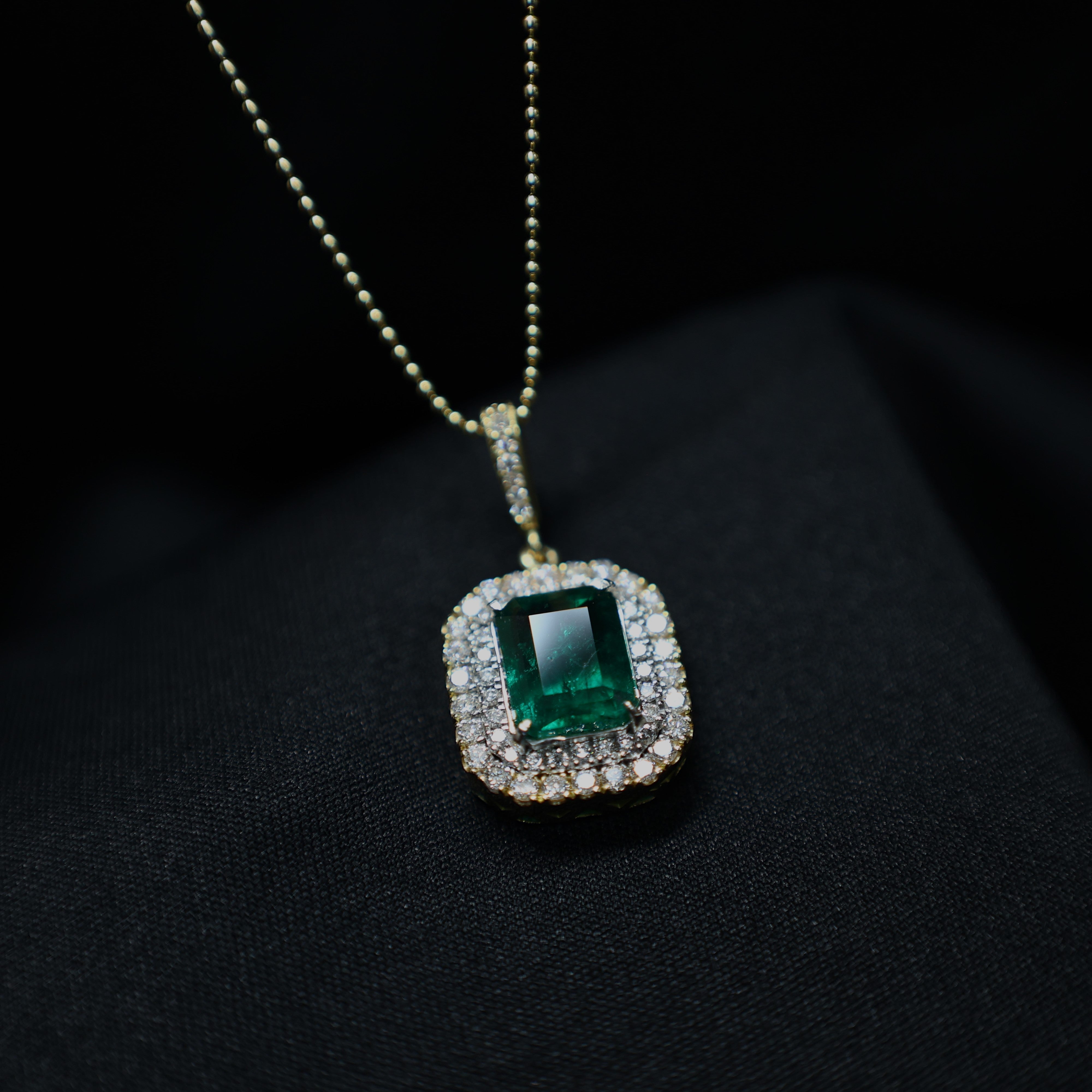 Round Marquis Pendant with Central Emerald and Zircon Accents
