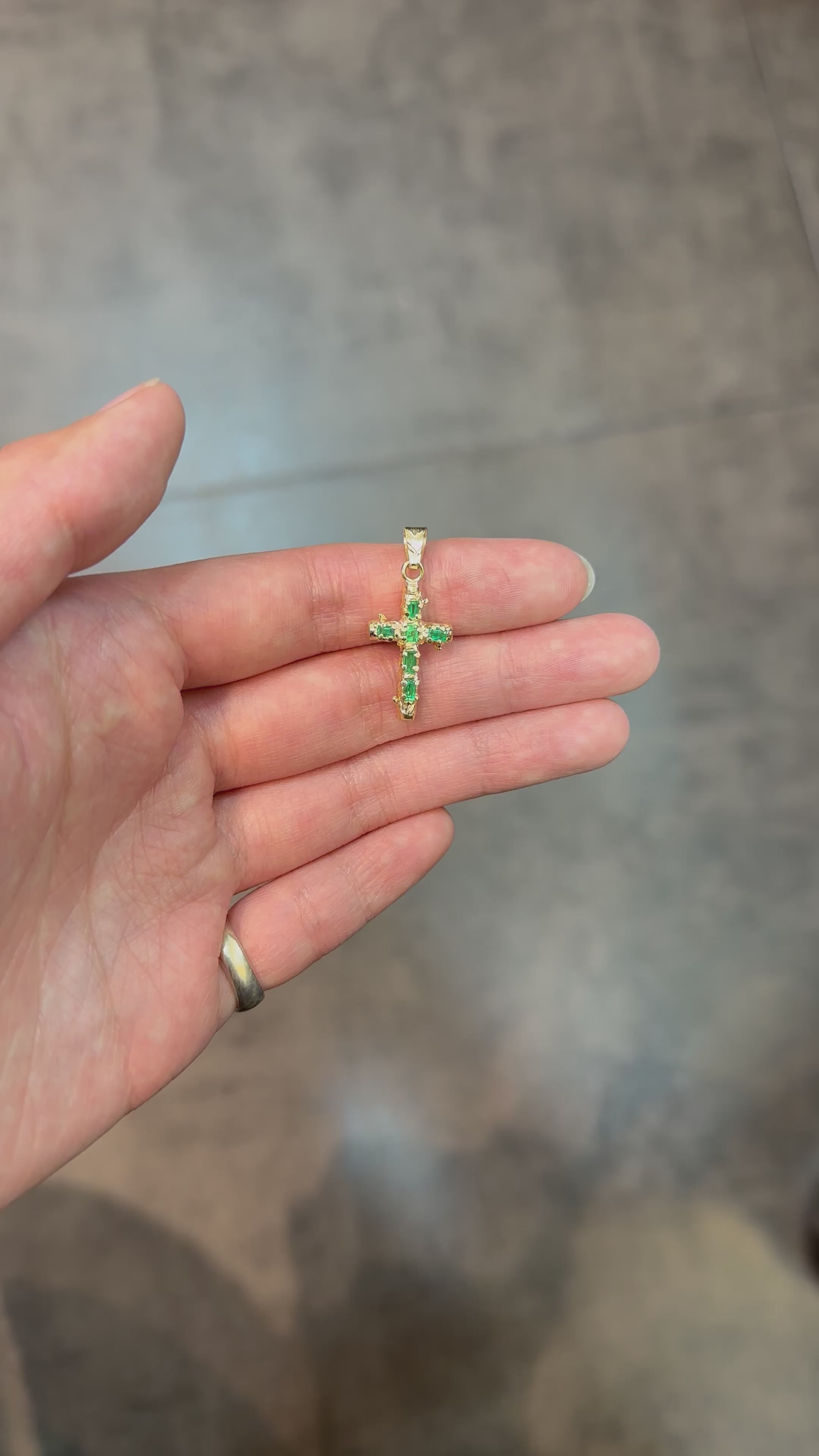 Cruz de diseño atrevido estilo baúl con esmeraldas colombianas
