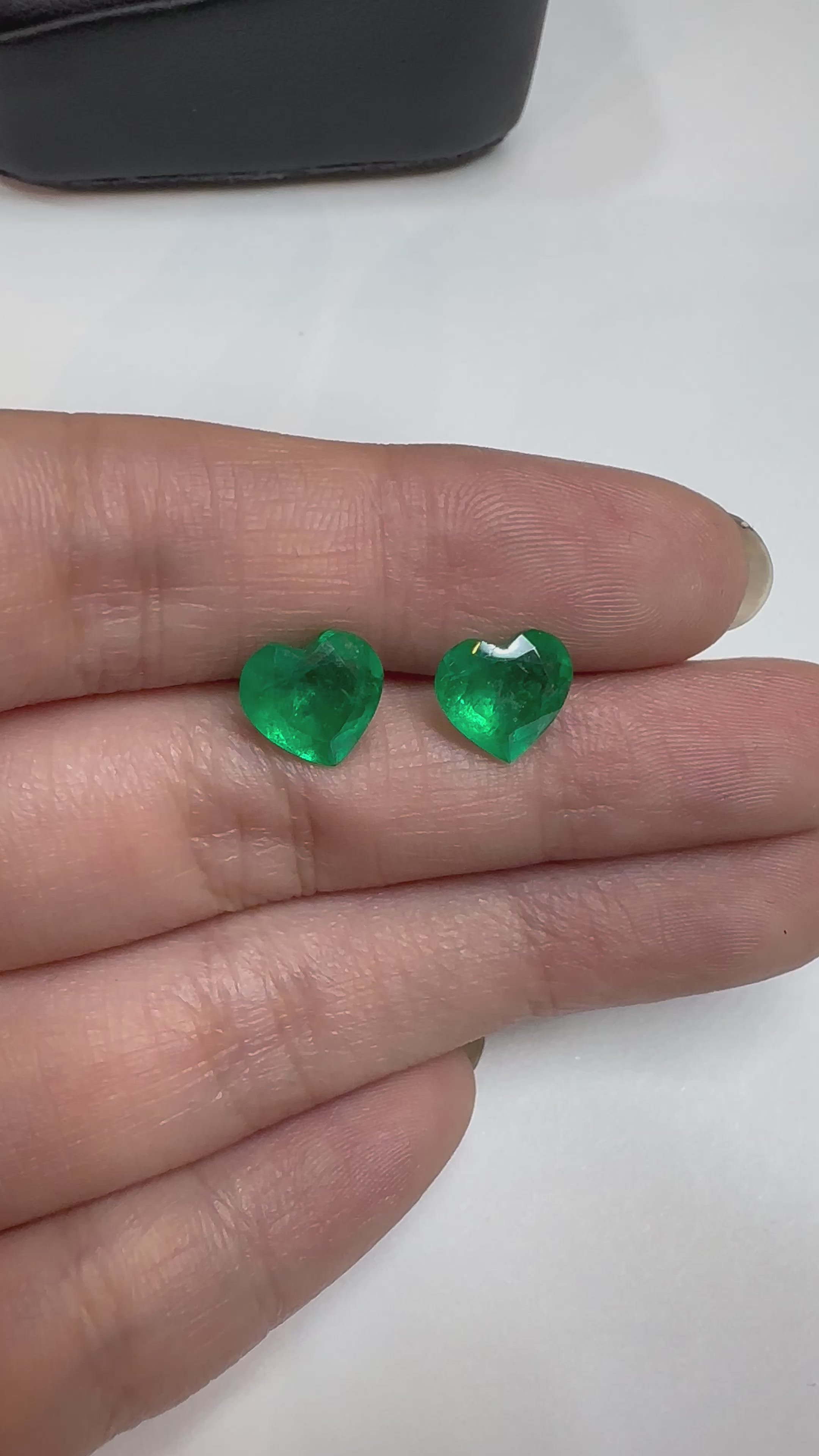 Exquisito par de esmeraldas sueltas en forma de corazón, 3,2 cts.