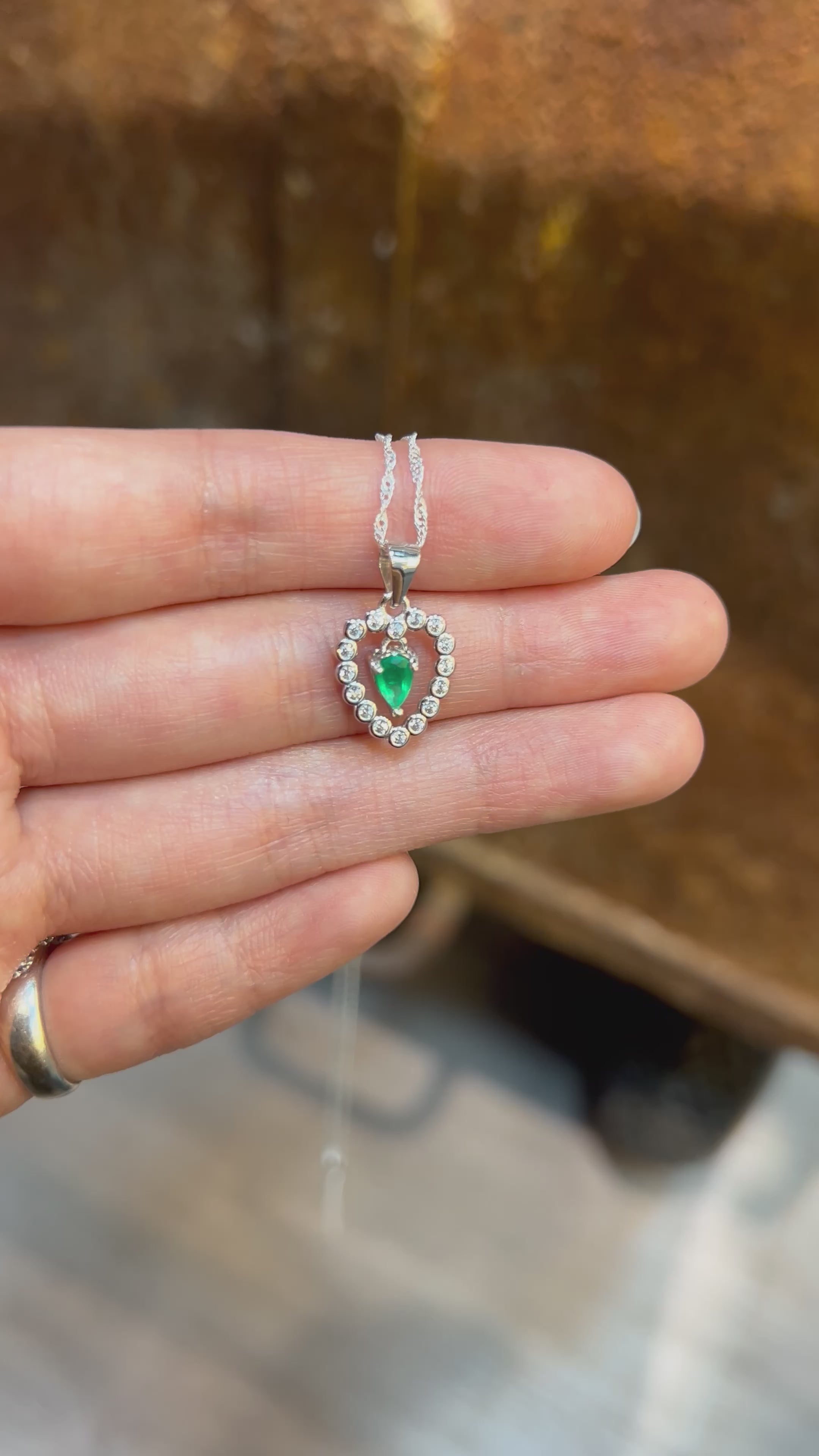 Colgante de corazón con esmeralda colombiana en forma de lágrima central