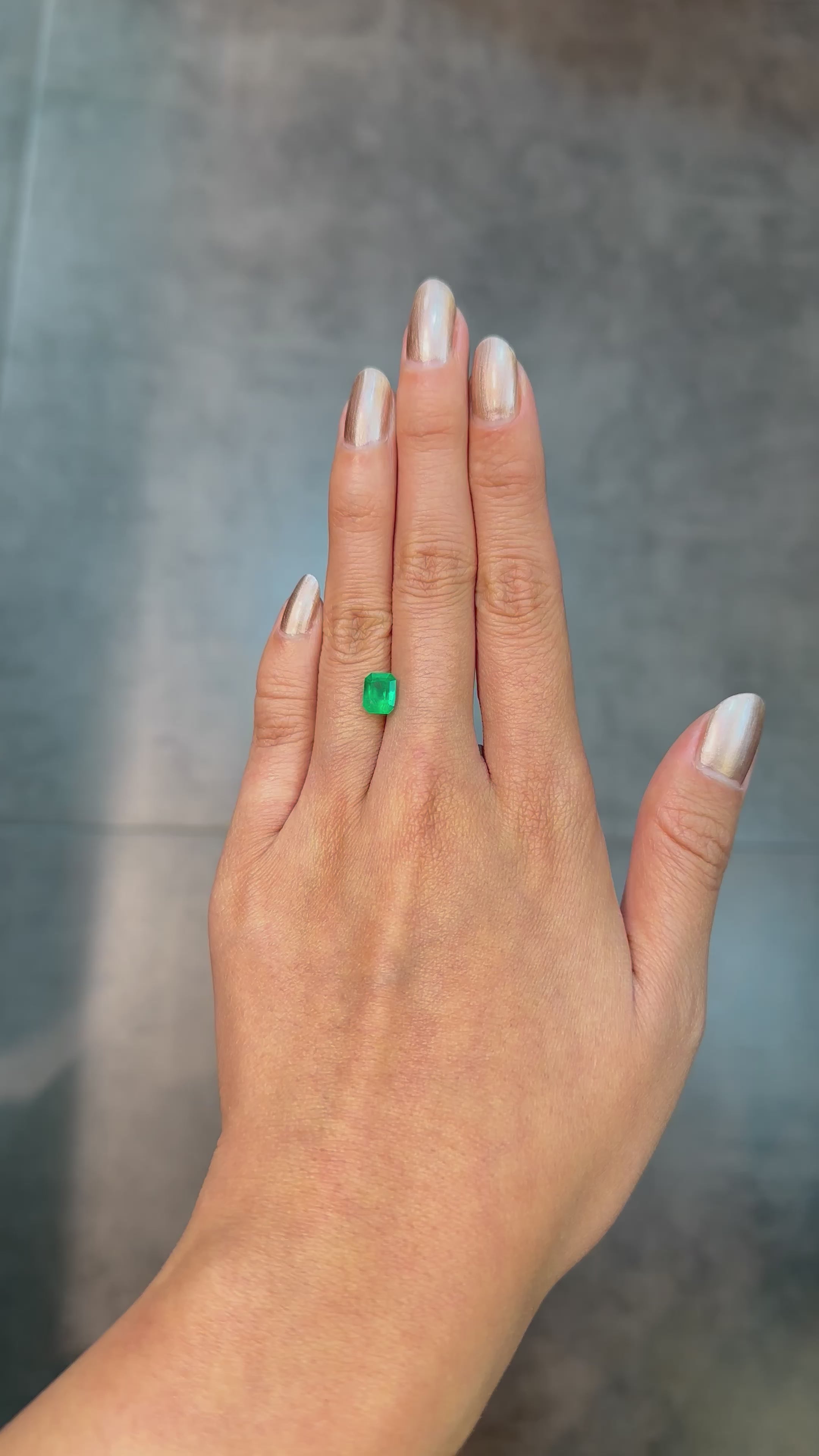 Émeraude verte vive de 1,37 ct, taille émeraude, d'une clarté exceptionnelle
