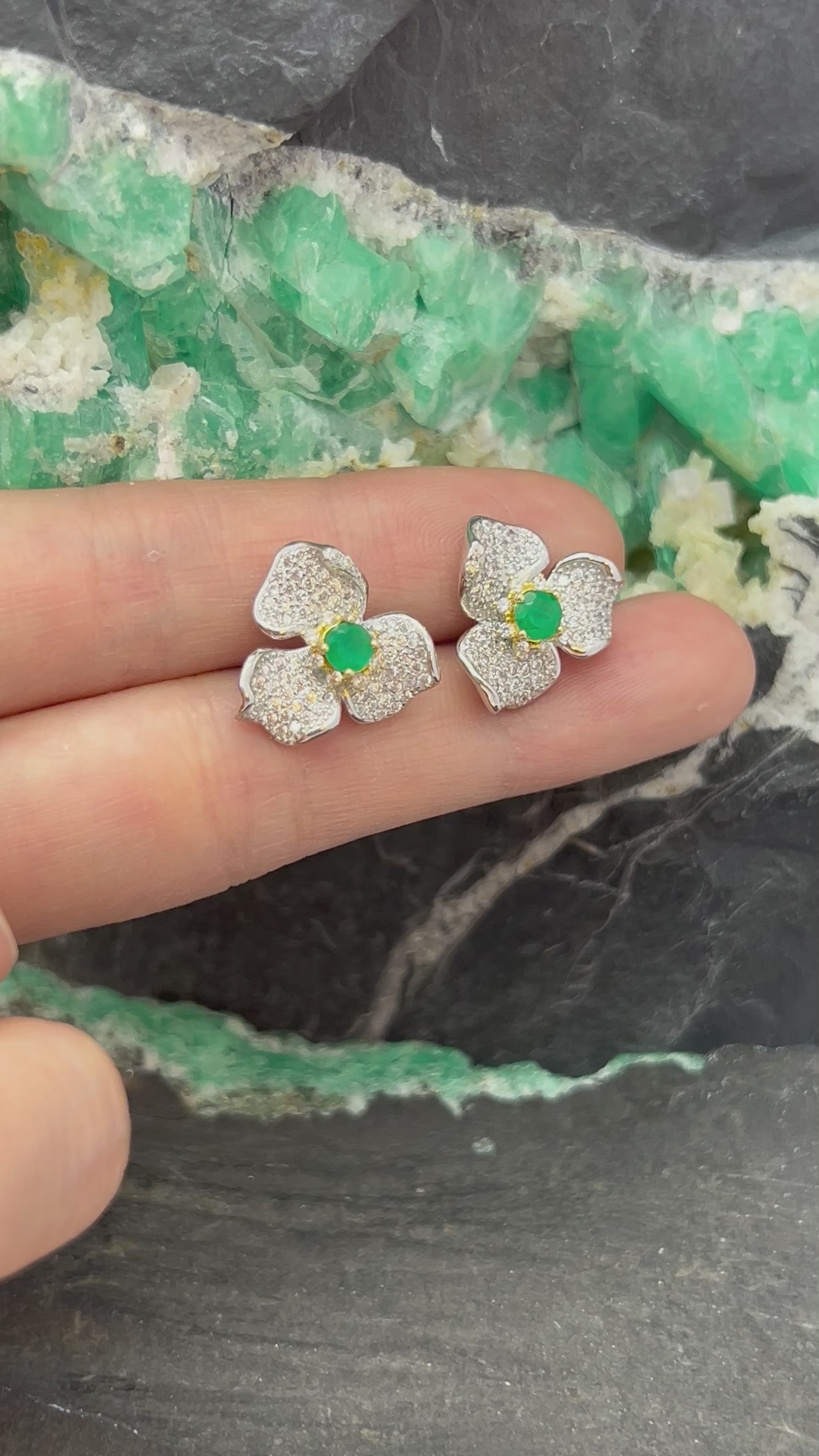 Magnifiques boucles d'oreilles en argent avec orchidée colombienne et pétales en zircone cubique