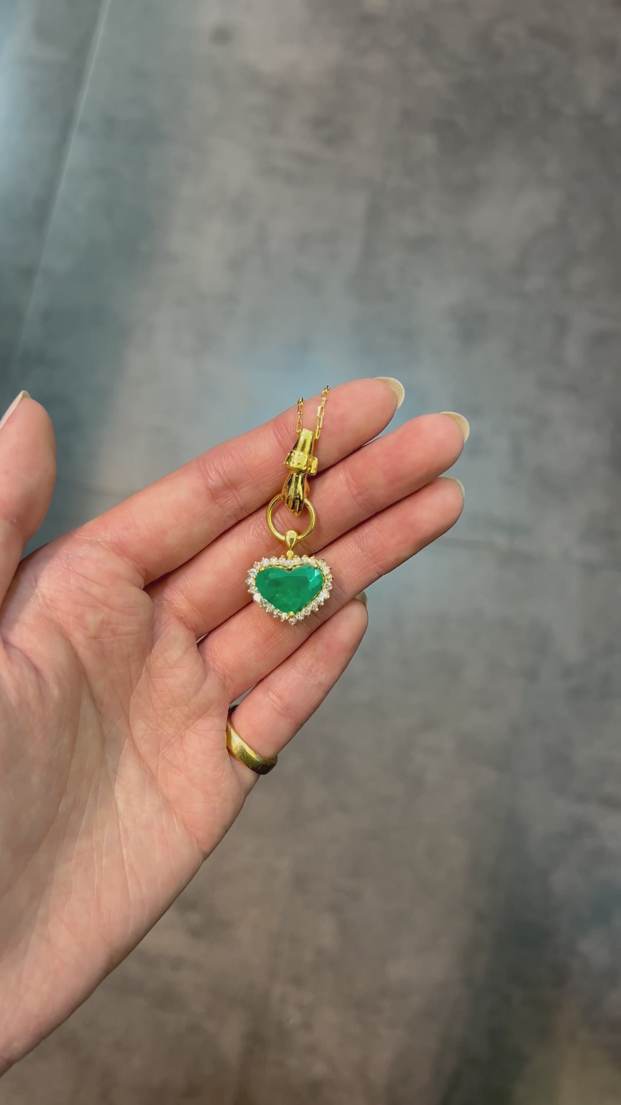 Magnifique pendentif émeraude en forme de cœur en or jaune 18 carats
