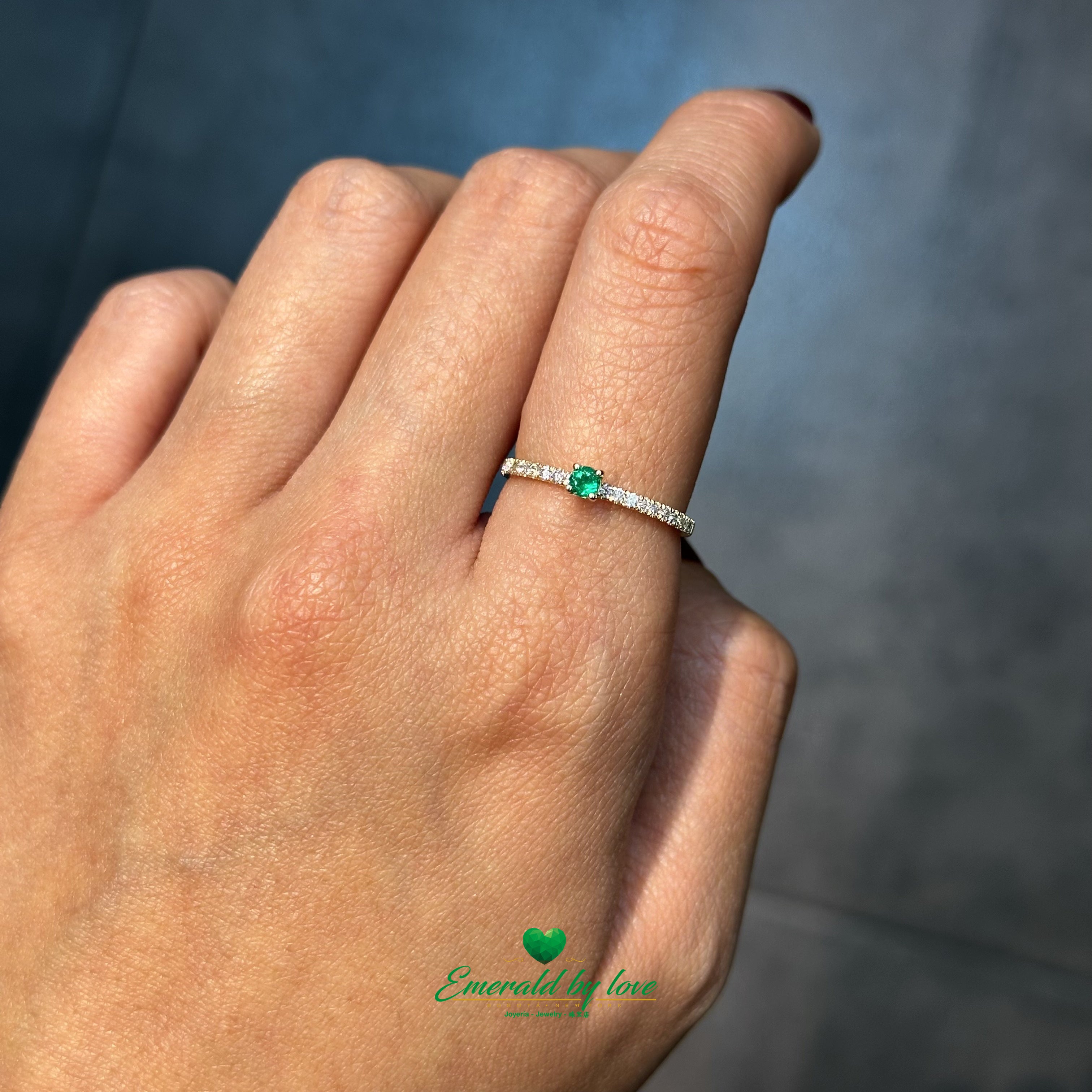 Round Colombian Emerald Ring with Diamond-Set Band in 18K Gold