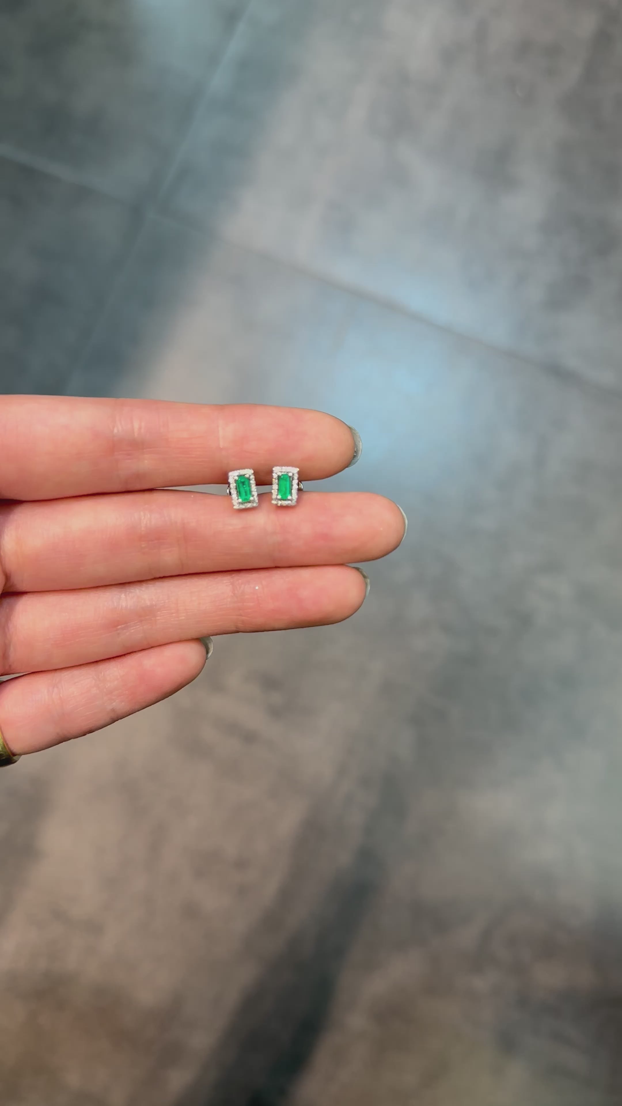 Delicate Marquise Earrings with Baguette Emeralds and Diamonds in 18K White Gold