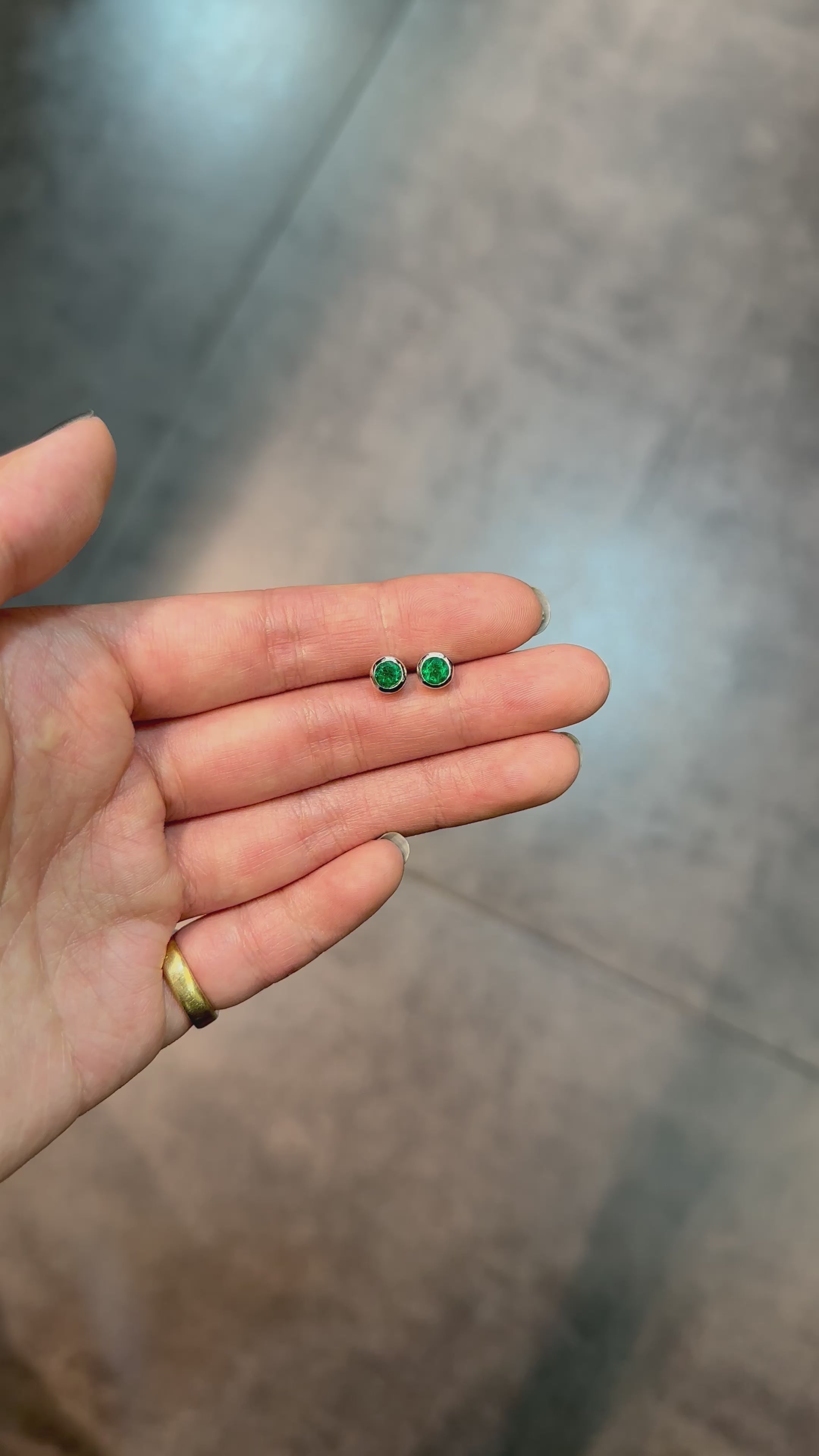 Elegant White Gold Earrings with Round High-Quality Emeralds in Bezel Setting