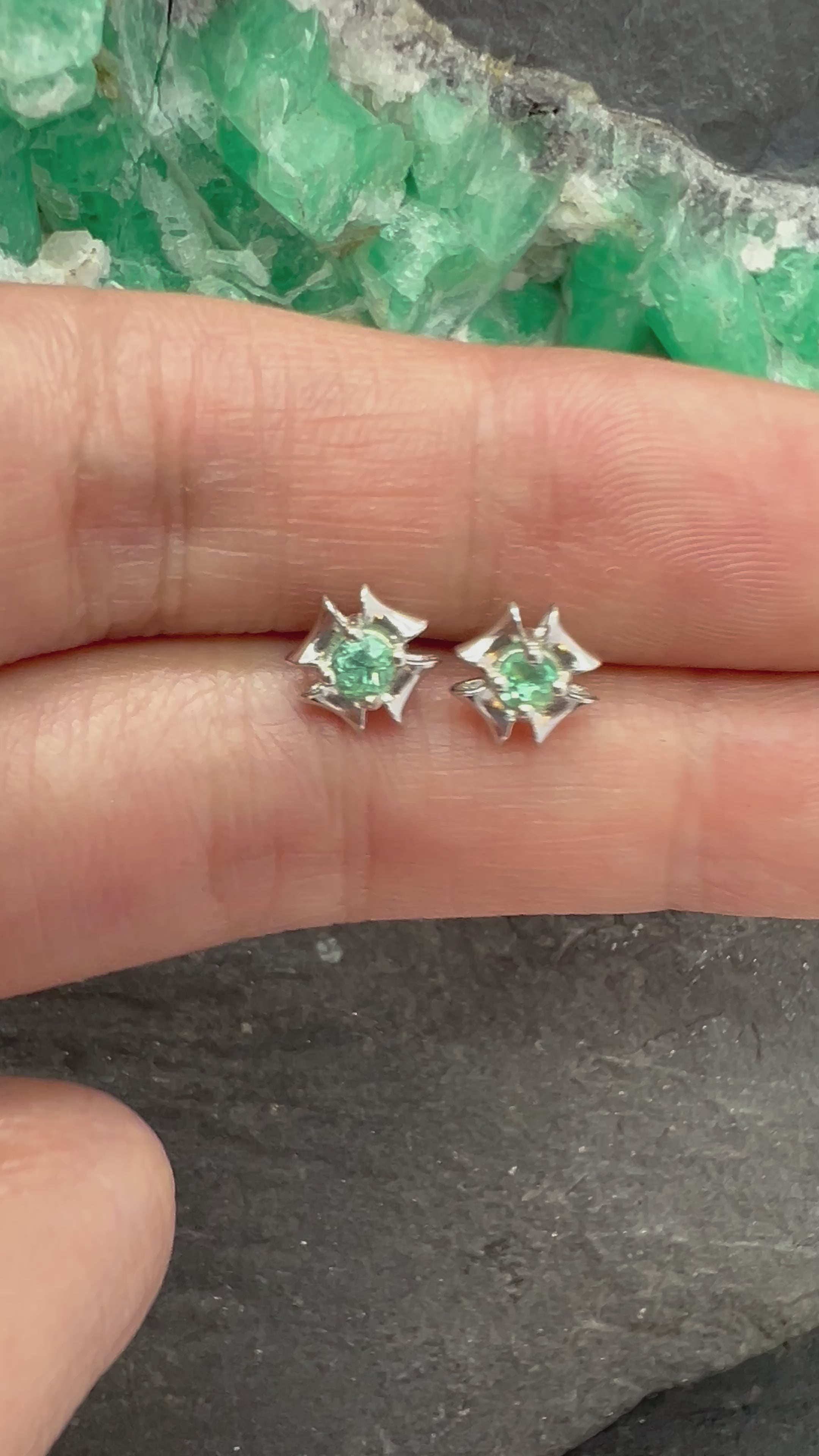 Boucles d'oreilles en forme de fleur avec quatre coins plats et cristal émeraude central