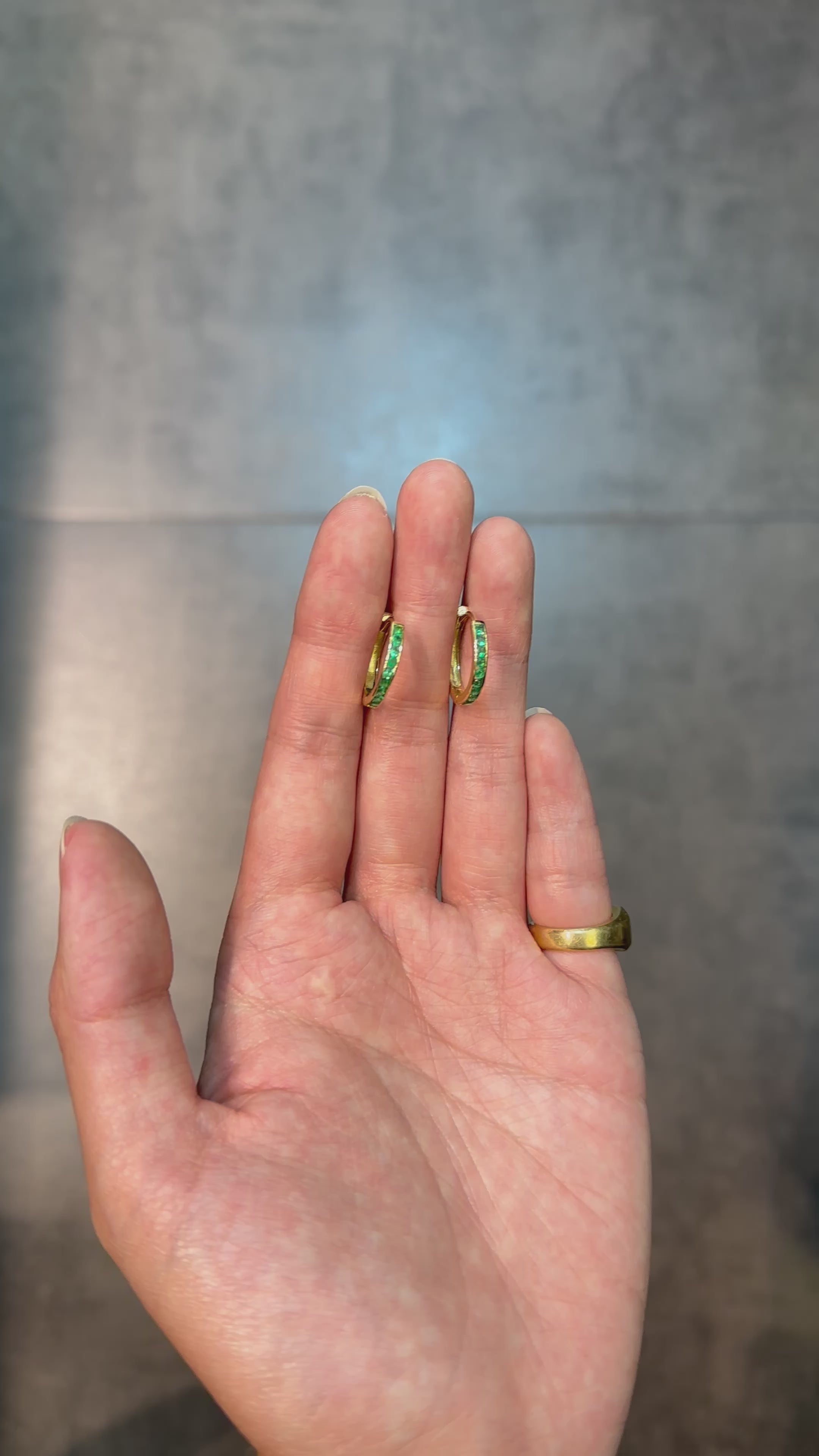Spectacular Yellow Gold Hoops with Round Emeralds in Bezel-Set Infinity Style