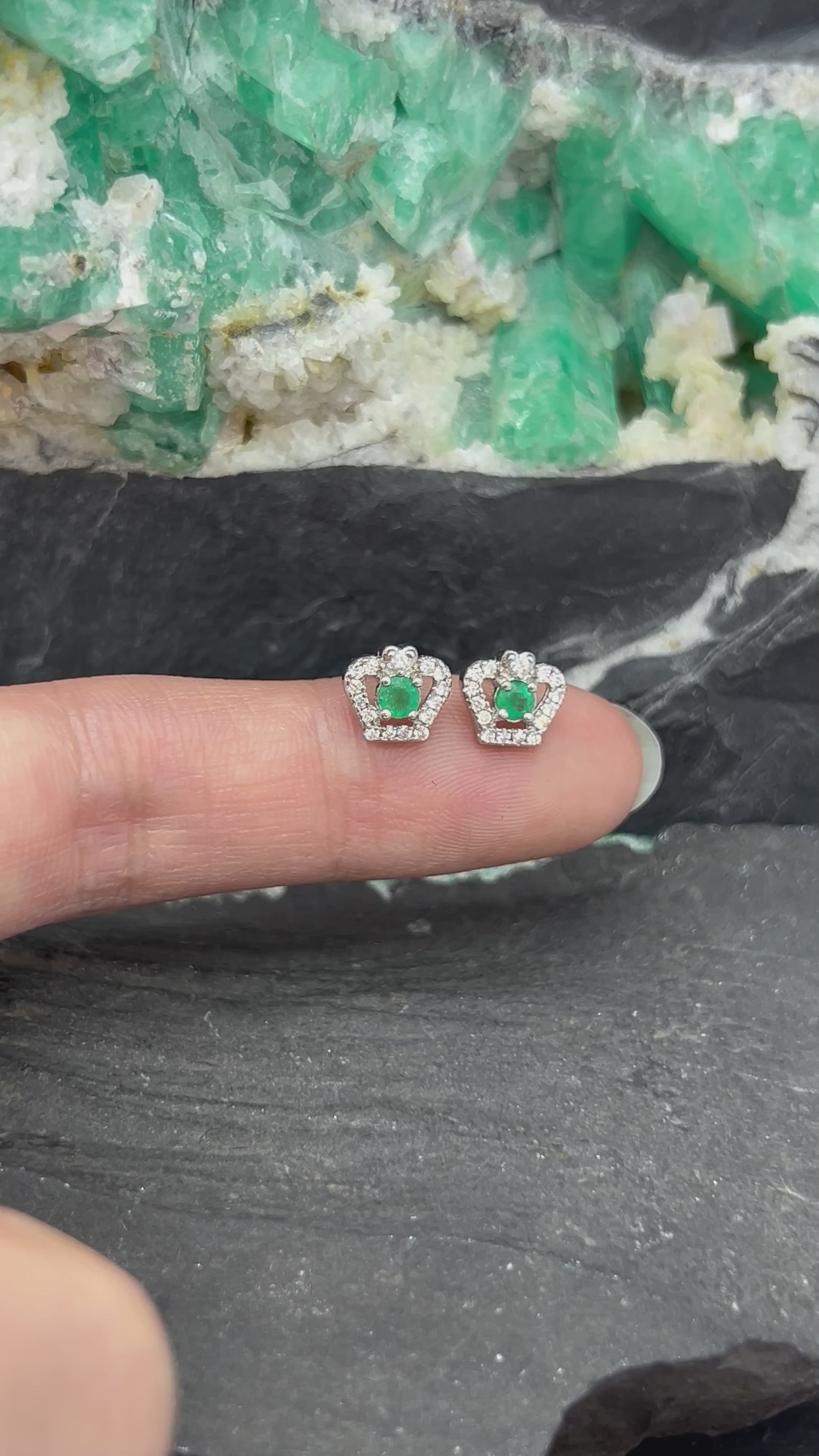 Boucles d'oreilles couronne en argent sterling avec émeraudes colombiennes rondes centrales