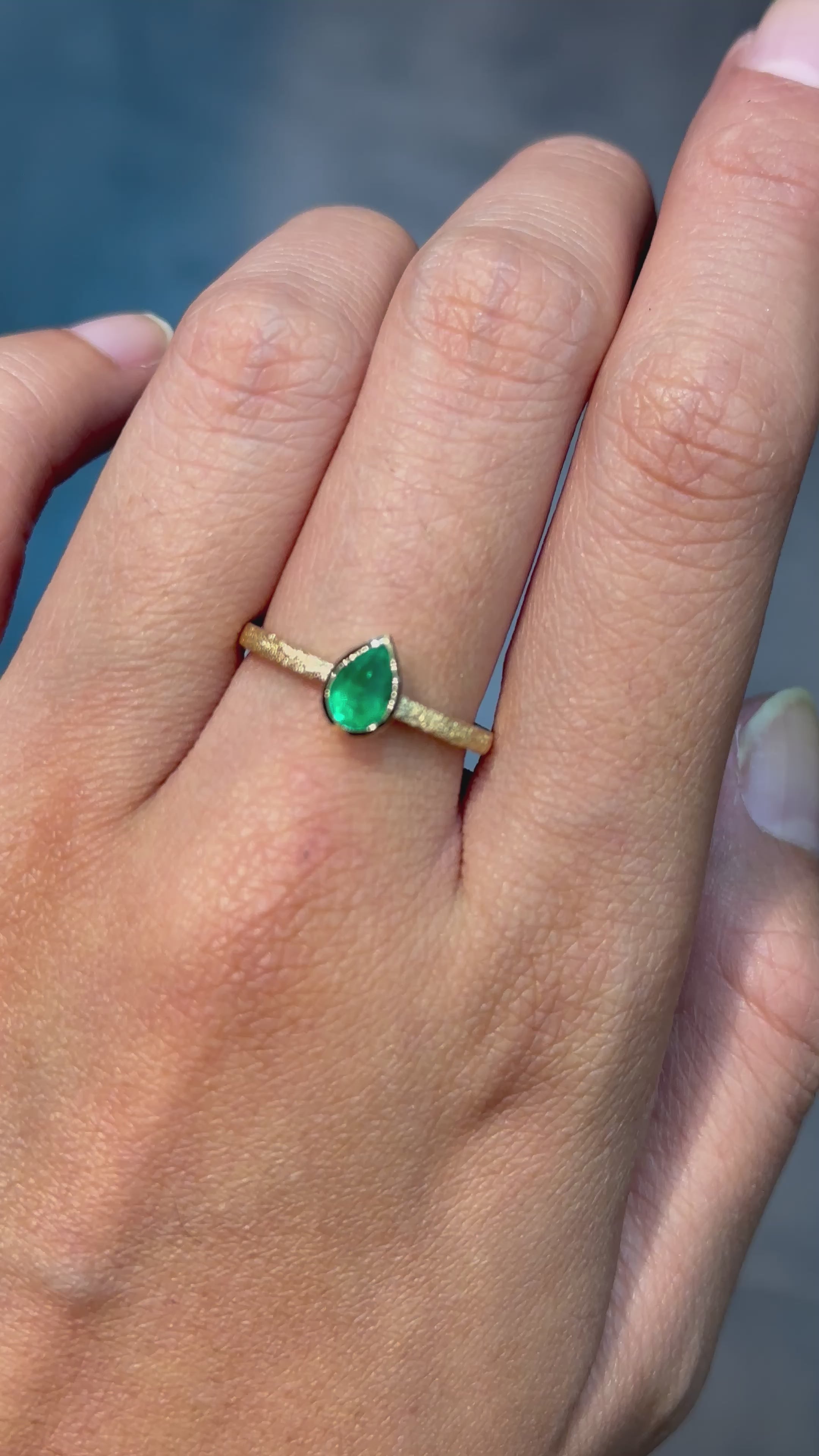 Vintage Textured Band Design Ring with 0.45 ct Teardrop Emerald