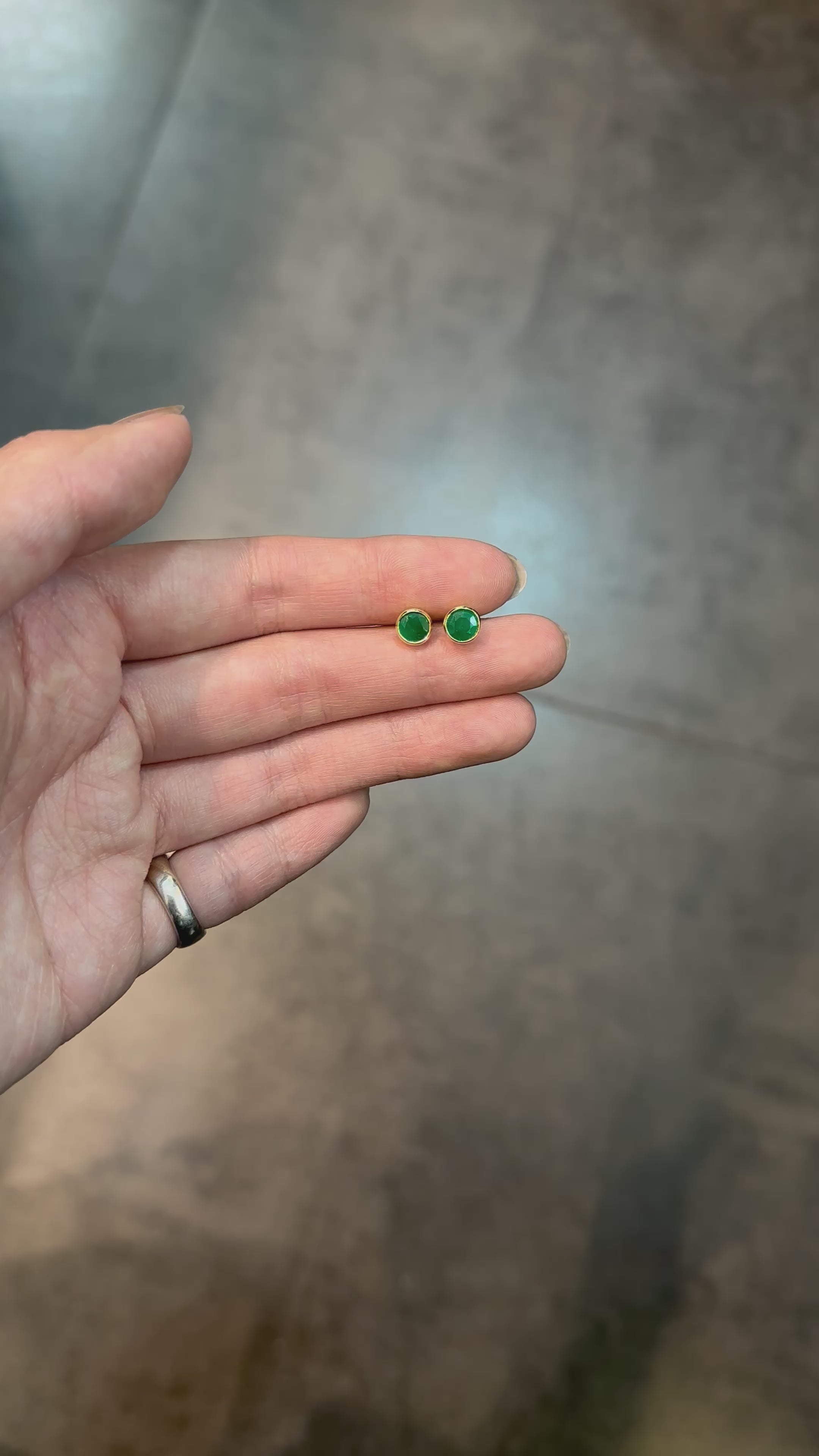 Clous d'oreilles en or jaune avec émeraudes rondes de 1,1 ct dans un sertissage clos