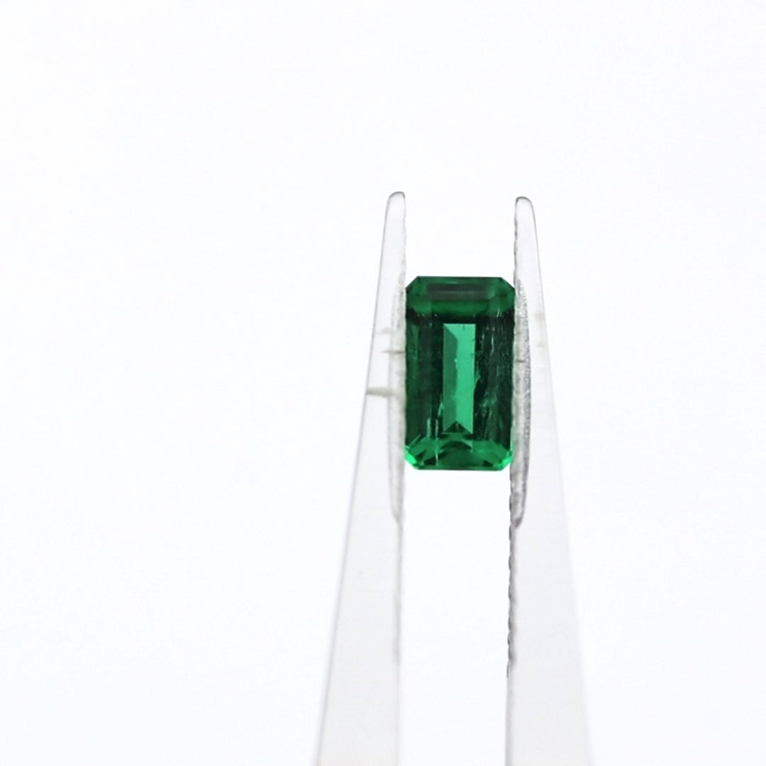 Discover the elegance of this 0.93 carat Colombian emerald, expertly cut in a refined baguette shape that highlights its natural beauty and clarity. Sourced from Colombia, the world’s most prestigious origin for emeralds, this gemstone showcases a vibrant green color with exceptional transparency.