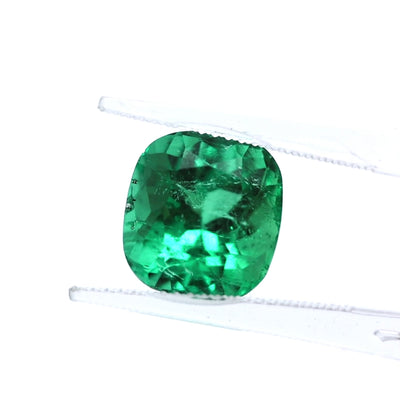This beautiful 4.96 carat Colombian emerald features a unique oval cushion cut, combining soft curves with elegant proportions. Its rich, well-defined green tone enhances the natural beauty of the gemstone, giving it a vibrant and luxurious presence.
