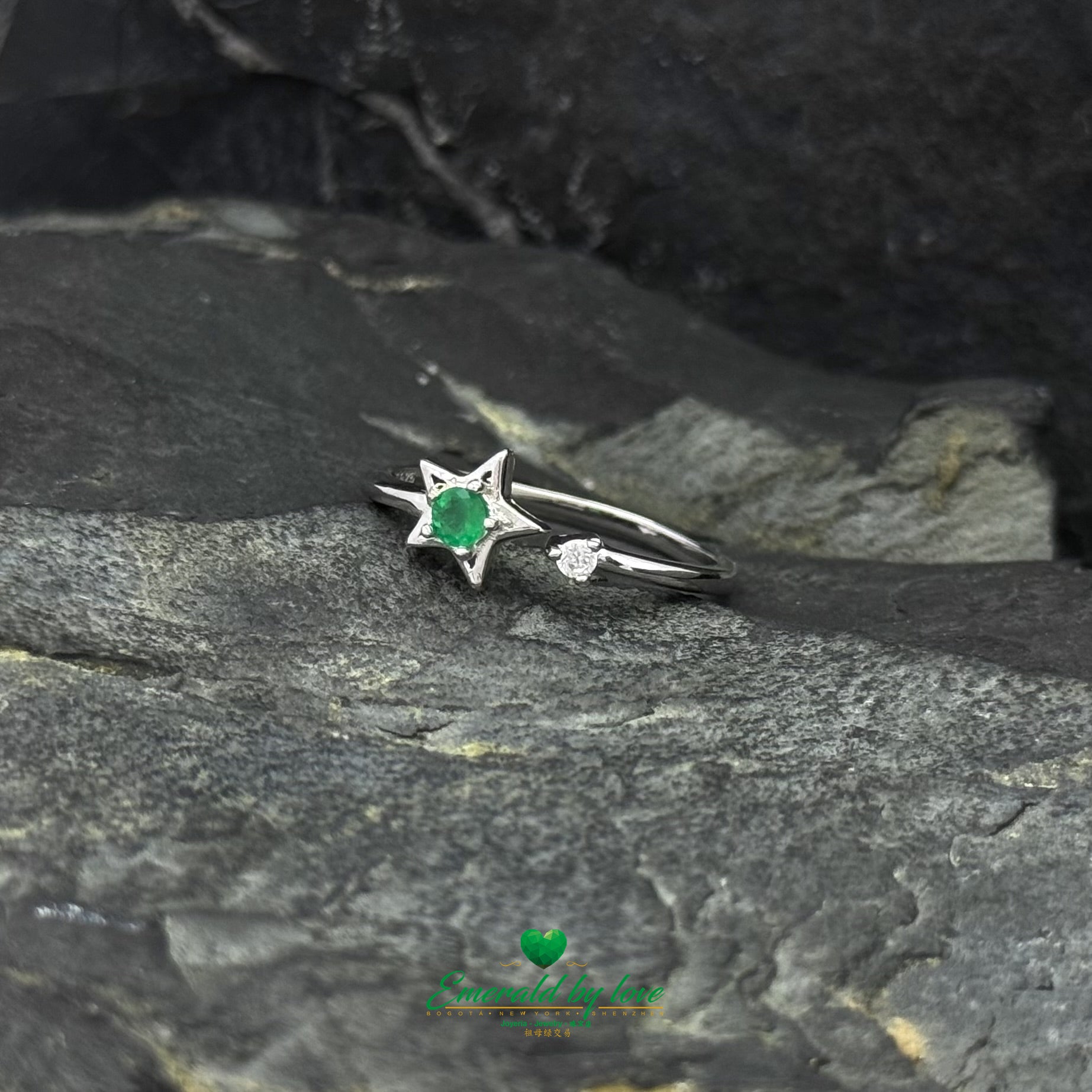 Minimalist 925 Sterling Silver Star Ring with Small Round Emerald
