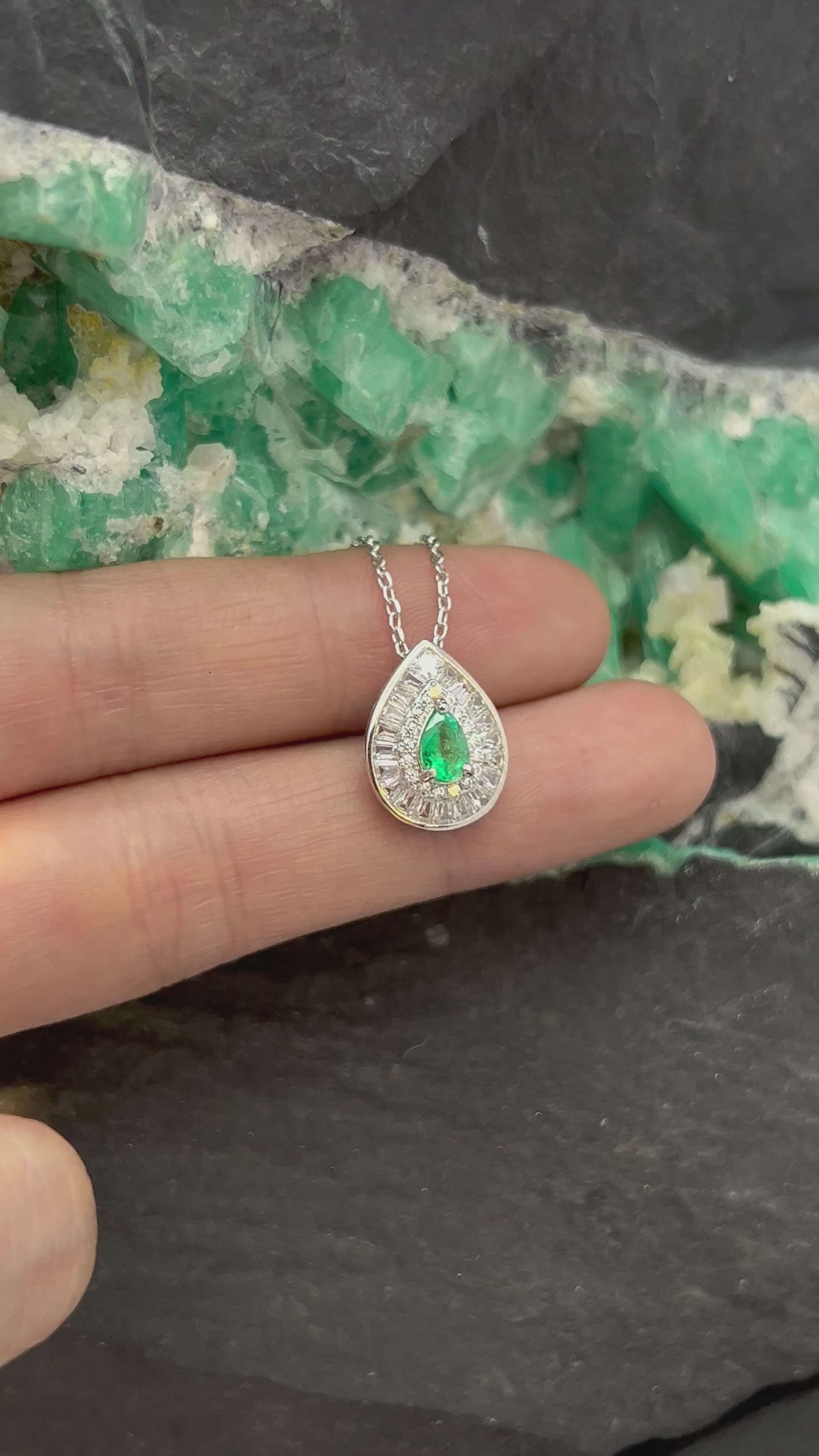 Pendant with Pear-Shaped Colombian Emerald Surrounded by Round and Baguette White Zircons