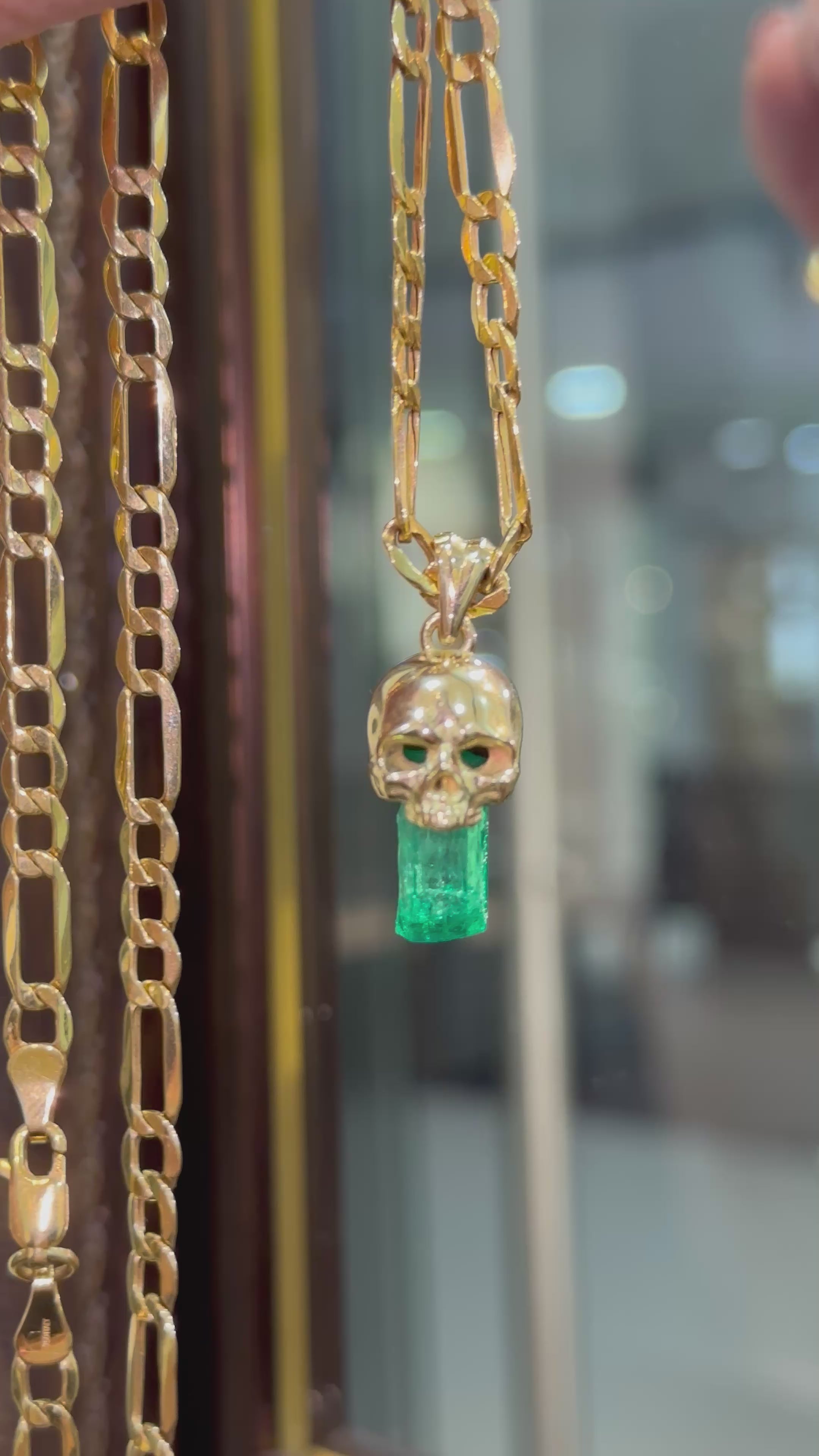 Skull Pendant in 18K Yellow Gold with Embedded Canutillo Colombian Emerald