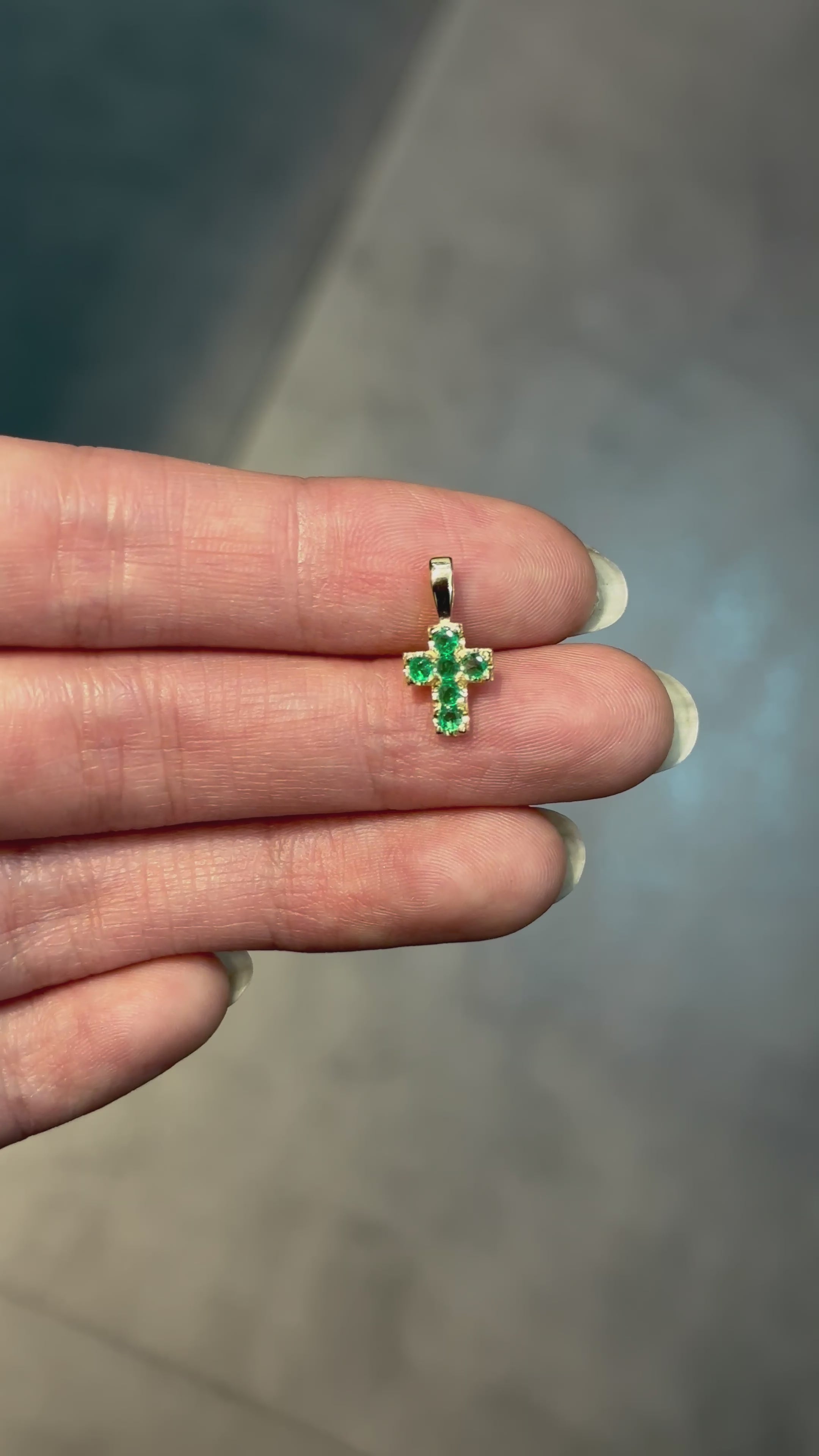 Minimalist Cross Pendant in 18K Yellow Gold with Colombian Emeralds