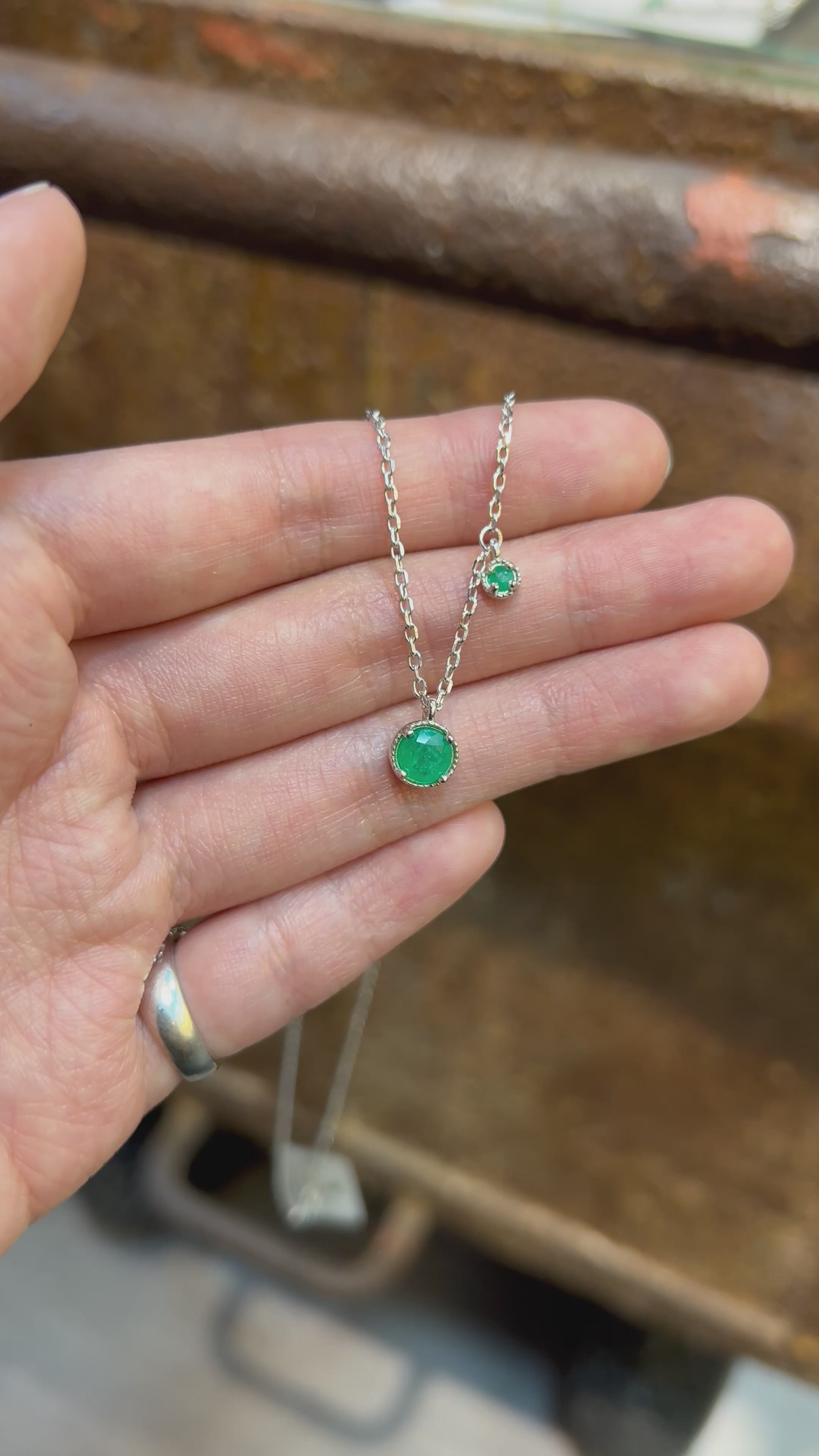 Double Round Pendant with Emeralds Large and Small Round Emeralds in Silver