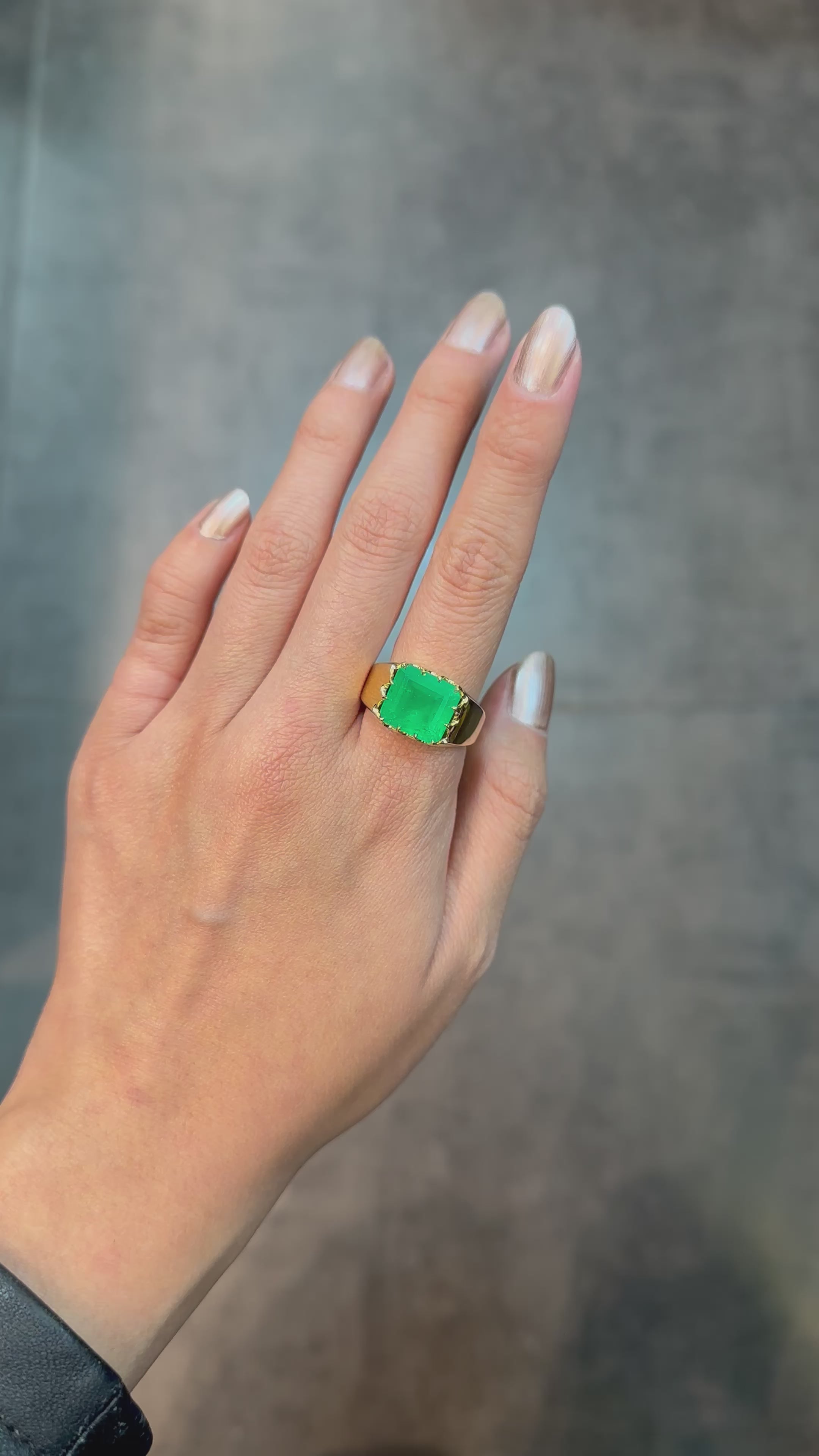 Unisex Yellow Gold Ring with Large Rectangular Emerald in Multi-Prong Setting